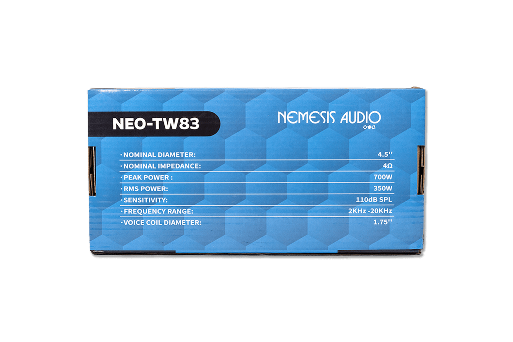 4.5″ super tweeter pair , 350W RMS (pair), 4-Ohm, neodymium, 110dB sensitivity, sharp detail.